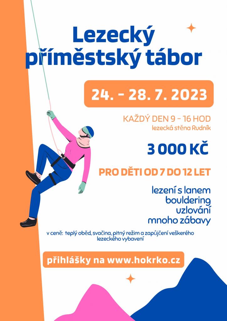 Lezecký příměstský tábor od 24. - 28.7.2023 pro děti od 7 do 12 let. Každý den od 9:00 do 16:00 hodin - lezecká stěna Rudník.