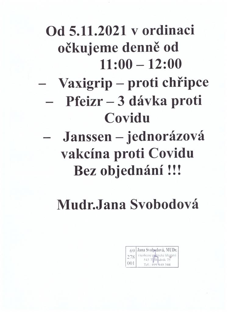 MUDr. Jana Svobodová - očkování od 5.11.2021.