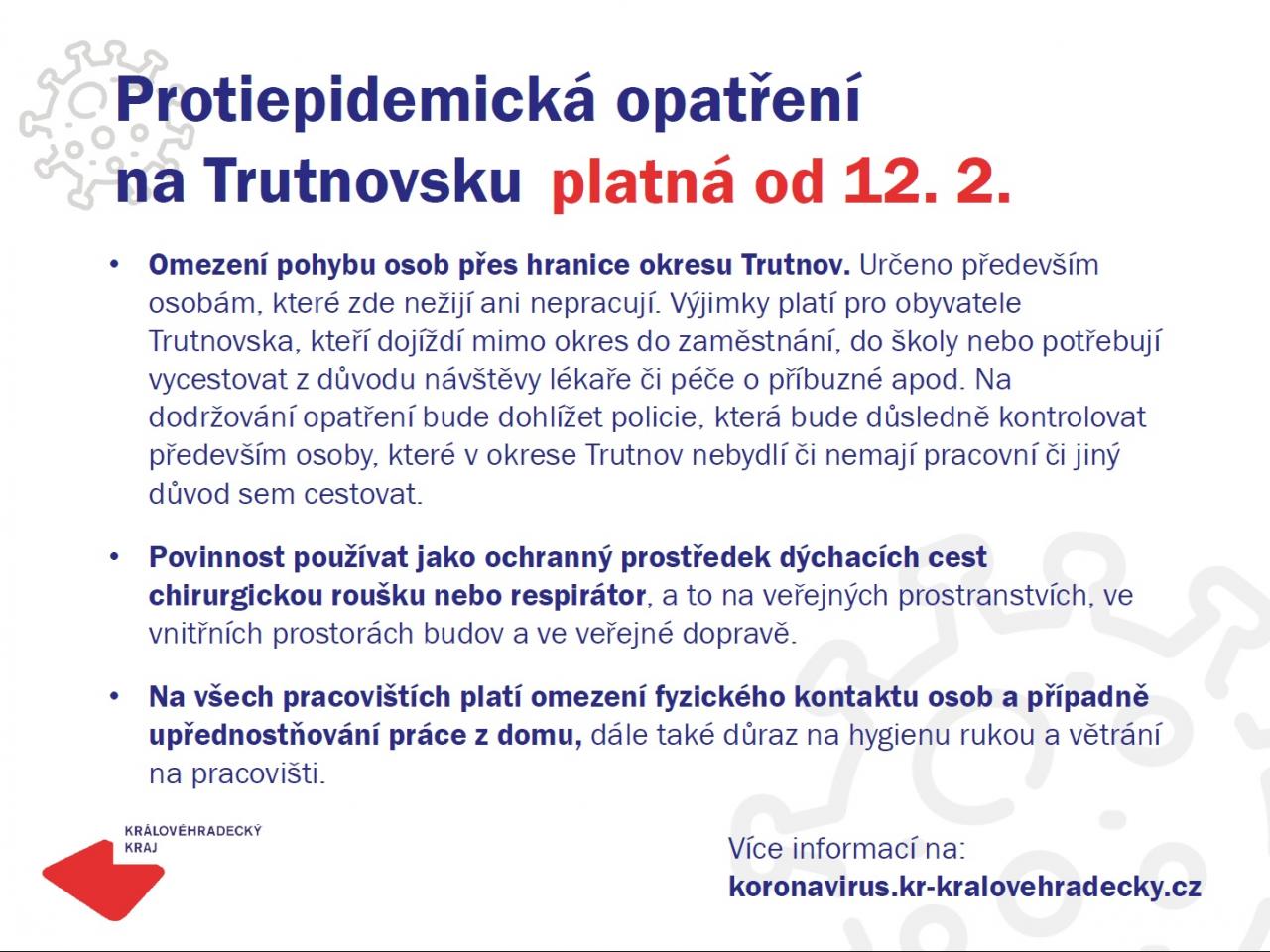 Protiepidemická opatření na Trutnovsku platná od 12.2.