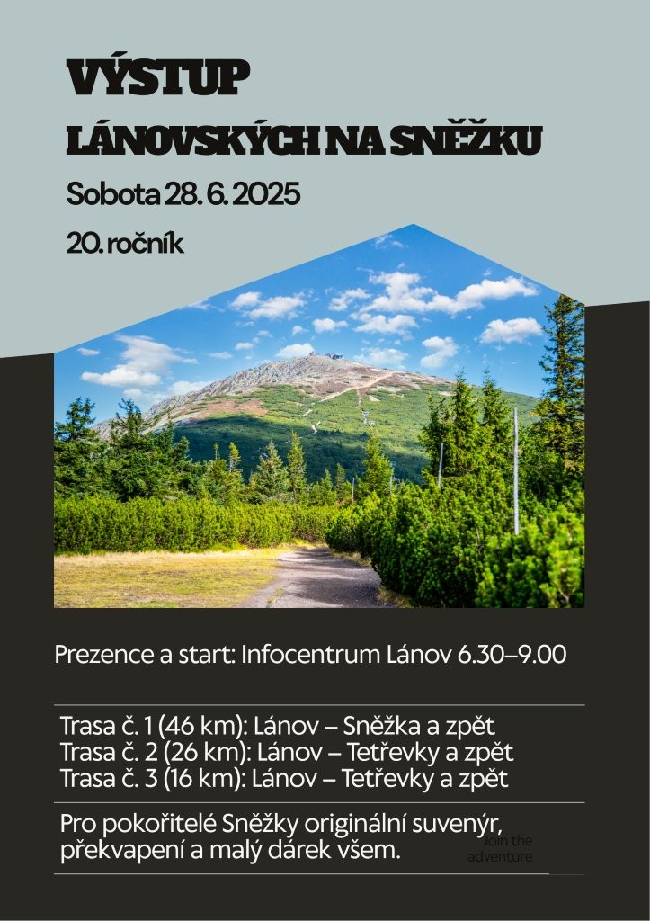 Pozvánka na 20. ročník - Výstup Lánovských na Sněžku, který se koná dne 28.6. 2025 od 6:30.